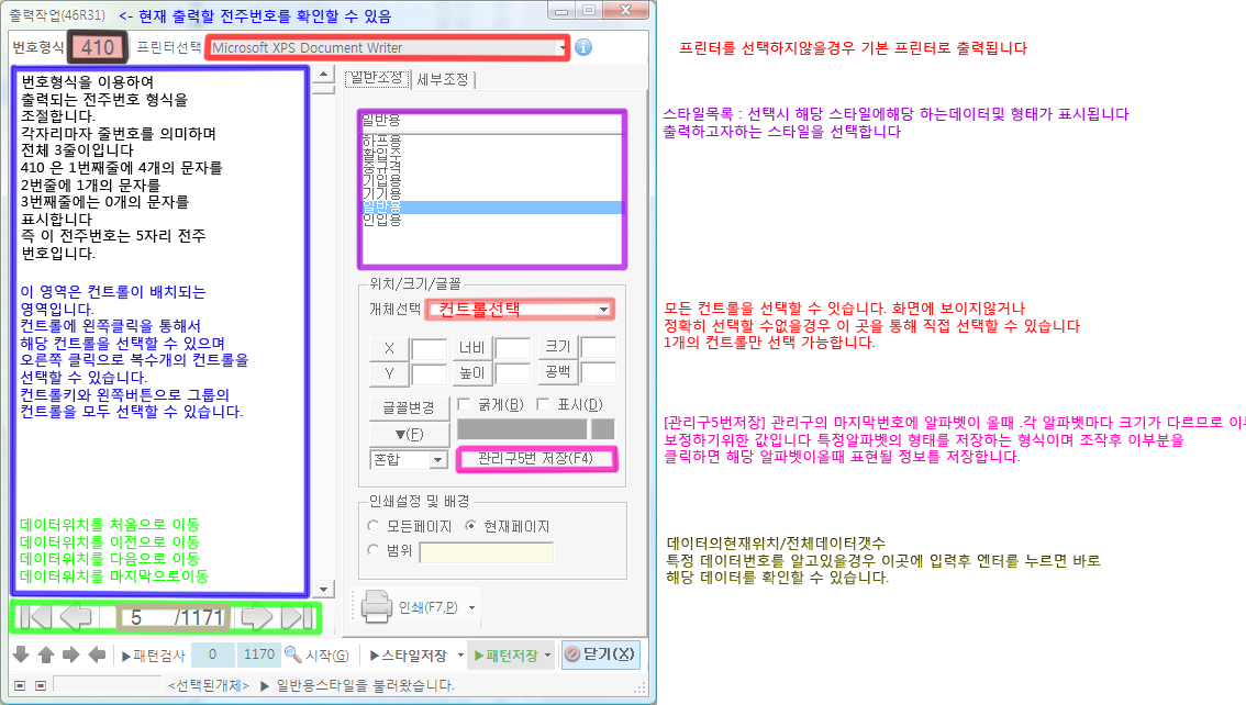 ±Û²Ãº¯°æ : ¼±ÅÃµÈ °³Ã¼µéÀÇ ±Û²ÃÀ» º¯°æÇÕ´Ï´Ù. ±âº»°ªÀº ¸Ç óÀ½ ¼±ÅÃµÈ ÄÁÆ®·ÑÀÔ´Ï´Ù ±½°Ô/Ç¥½Ã : ÄÁÆ®·ÑÀÇ ±Û²ÃÀ» ±½°ÔÇ¥½ÃÇÕ´Ï´Ù/ÄÁÆ®·ÑÀ» ȸ鿡 º¸ÀÏÁö¸¦ °áÁ¤ ¡å : ¿©·¯ÄÁÆ®·ÑÀÌ ¼±ÅõǾîÀÖÀ» °æ¿ì ¸ÇóÀ½ ¼±ÅÃµÈ ÄÁÆ®·ÑÀÇ ±Û²ÃÁ¤º¸·Î ¸ðµÎ º¯°æ ÇÕ´Ï´Ù. ¹øÈ£Çü½Ä / ÀüÁÖ¹øÈ£Ç¥½ÃÇü½Ä(È¥ÇÕ,ºÐ¸®,ÅëÇÕ) : ÀüÁÖ¹øÈ£°¡ ȸ鿡 Ç¥½ÃµÇ´Â ÇüŸ¦ ÀǹÌÇϸç À̱â´ÉÀº »ó´ÜÀÇ ¹øÈ£Çü½Ä¿Í °°ÀÌ ¿òÁ÷ÀÔ´Ï´Ù. ¿¹¸¦µé¾î ÀüÁÖ¹øÈ£°¡ 128R12L123ÀÏ °æ¿ì